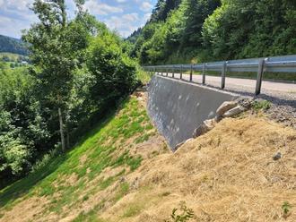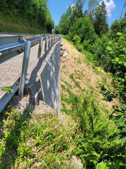 Wie berichtet wurde seit Ende 2022 daran gearbeitet, die Straße nach Aigis zu sichern. Die Firma Buchelt hat in den letzten Wochen die Arbeiten abgeschlossen. Die umfangreichen Maßnahmen sollen nun dafür sorgen, dass der Hang und damit die Straße nicht abrutscht. Ein Kontrollmesspunkt ist noch für einige Zeit installiert, um die Bewegung im Hang zu beobachten.