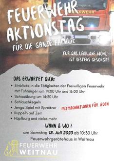 Die Freiwillige Feuerwehr und ich als Erster Bürgermeister des Marktes Weitnau möchten dich und deine Eltern recht herzlich zu unserem Feuerwehr-Aktionstag einladen am