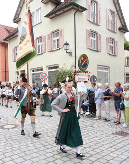Der Trachten- und Heimatverein nahm am langen Festzug bis ins Gelände der Landesgartenschau teil und beeindruckte mit dem Sternentanz auf der Bühne.