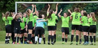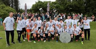 Die Fußballerinnen des TSV Buchenberg feiern nach dem 4:1-Heimsieg im letzten Saisonspiel gegen Wattenweiler die Meisterschaft in der Bezirksliga.
