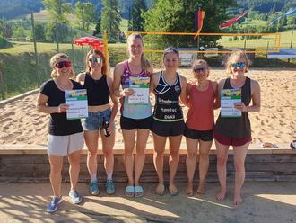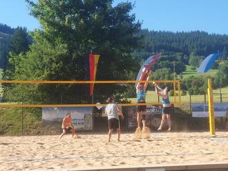 Beim Aktiventurnier des Weitnauer Beachevents am Wochenende kam es am Sonntag in der Damenkonkurrenz zum Finale zwischen „Zwergenaufstand“ mit Verena Scherm und Katja Jast aus Innsbruck und „Mehr Aperol“ mit den Burgberger Volleyballerinnen Miriam Amann und Lisa Alpers. Anscheinend hatten die Burgbergerinnen bei der Beachparty doch nicht so viel Aperol erwischt, denn sie setzten sich im Endspiel durch, obwohl sich die beiden „Zwerge“ Scherm und Jast mit teils spektakulären Abwehraktionen nach Kräften zur Wehr setzten. Im kleinen Finale setzten sich „Anatomisch komisch“ mit der neuen Weitnauer Zuspielerin Anett Kurz und Katrin Gehr aus Kempten gegen „Sandsationell“ durch, das Team aus den beiden Weitnauer Spielerinnen Simona Warnke und Franzi Hofmann.