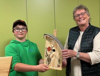 Da unsere Rektorin Frau Heß-Thamm dieses Jahr von unserer Schule geht, haben wir ihr ein selbst gebautes Vogelhäuschen geschenkt. Ihre Freude war ihr anzusehen. Unter anderem haben wir Stehpulte gebaut, die bei den Lehrern sehr gut ankamen.
