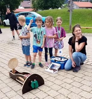 Und weil „Dabei Sein!“ schließlich das Wichtigste für jedes Kind und seine Familie sein sollte, erhält auch jedes teilnehmende Kind vom Verein die gleiche Medaille – und vom Sponsor, der Marien Apotheke Weitnau das gleiche (tolle) Geschenk- egal auf welche Platzierung das Kind mit seinem Team Partner gelaufen ist.
