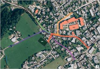 In dieser Zeit ist die Durchfahrt der markierten Strecken nicht möglich.