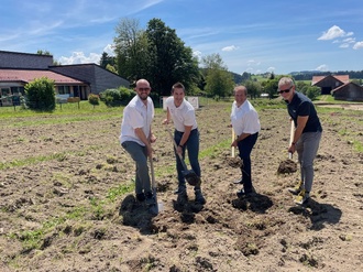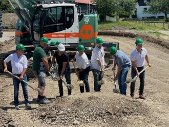 Im neuen Baugebiet sollen vor allem Familien ein Zuhause finden. Die Verantwortlichen des Marktes Buchenberg, der Baufirma Max Wild und des Ingenieurbüros Klinger vollzogen den offiziellen Baubeginn der Erschließungsarbeiten mit dem traditionellen Spatenstich. Auf der Fläche am Ortsrand angrenzend an die Römerstraße sollen vier Doppelhäuser, ein Reihenhaus mit vier Elementen, fünf Mehrfamilienhäuser mit je acht Wohneinheiten und 15 Einfamilienhäuser entstehen. Für die Vergabe der Einfamilien- und Zweifamilienhäuser sind laut Bürgermeister Toni Barth bereits rund 80 Bewerbungen eingegangen. Davon sind mehr als die Hälfte Einheimische oder ehemalige Buchenberger. Die Bauplatzvergabe soll nach Möglichkeit Ende Juli bzw. Anfang August starten. Die Erschließungsarbeiten sollten im Frühjahr 2025 soweit abgeschlossen sein, dass die ersten Häuslebauer starten können.