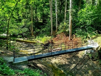 Auf Grund der Starkregenereignisse im letzten Jahr wurde der Hölzlertobel sowie die dortige Brücke stark beschädigt und aus ihrer Verankerung gerissen. Zur Instandsetzung des Wanderweges und der Wegeverbindung wurde somit eine neue Brücke benötigt. Aus einem von Heini Prestel zur Verfügung gestellten Grundträger fertigte das Bauhofteam eine neue Brücke an. Auf Grund der schwer zugänglichen Lage musste die Brücke per Helikopter an ihren Standort geflogen werden. Die Planung und Unterstützung beim Einbau übernahm die Fa. Merz Gala-Power.