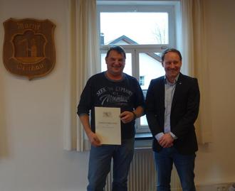 Auf 25 Jahre bei der Marktgemeinde Weitnau kann unser Bauhofmitarbeiter Ludwig Vogler zurückblicken. Er wurde am vergangenen Dienstag in einer Feierstunde vom Ersten Bürgermeister, Florian Schmid, im Sitzungszimmer des Rathauses mit einer Urkunde und einem Geschenk geehrt.