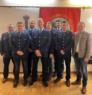 v. l. Herbert Schmid, Yannick Leckebusch, 1. Kdt. Siegfried Epple, Wolfgang Lipp, 2. Kdt. Karl Weixler, Bernd Weixler, Frank Immler, 1. Bgm. Florian Schmid