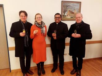 Beim Neujahrsempfang v. l. Herr Scheuren, Frau Hanke (Organistin in Wangen), Ortspfarrer Sanoj Mundaplakkel, Monsignore Erwin Reichart
