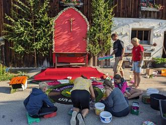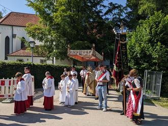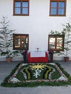 Das Fronleichnamsfest von Kleinweiler und Wengen wurde dieses Jahr in Wengen gefeiert. Den Festgottesdienst hielt Monsignore Reichart, der gemeinsame Kirchenchor Wengen- Kleinweiler gab dem Gottesdienst einen feierlichen Rahmen. Bei strahlendem Sonnenschein konnte anschließend die Prozession durch Wengen stattfinden, angeführt von den Fahnenabordnungen und der Wengener Musikkapelle. Wunderschöne Blumenteppiche lagen vor den vier festlich geschmückten Altären, den fleißigen kreativen Künstlerinnen sei an dieser Stelle herzlich gedankt.