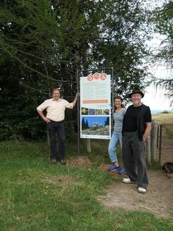 Künftig können die Besucher eine Infotafeln am Rauhenstein bewundern. Bürgermeister Toni Barth, Kathrin Schratt und Grundeigentümer Georg Kahle besuchten die neue Tafel. Copyright: Landschaftspflegeverband Oberallgäu-Kempten e.V.