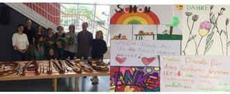 Am letzten Mittwoch vor den Sommerferien war es endlich wieder soweit: nach dreijähriger Pause hat der Elternbeirat wieder zum traditionellen Helferfest in die Schule eingeladen. Rund 100 Ehrenamtliche helfen verteilt über das ganze Jahr mit „die Schule schöner zu machen“ – so geschrieben auf vielen bunten Postkarten, die von den Kindern in liebevoller Kleinarbeit gebastelt wurden. „Besonders stolz macht mich die große Anzahl von helfenden Händen“, so Robert Bauer, Rektor der Grund- und Mittelschule. Für die Verpflegung der rund 50 anwesenden HelferInnen in der neuen Aula sorgte der Elternbeirat. Die Schülerschaft brachte ihren Dank dieses Mal auf eine ganz besondere Art und Weise zum Ausdruck: Sie hatten in den letzten Wochen zusammen mit ihren Lehrkräften einen gemeinsamen Film produziert, in dem auf ganz vielfältige Weise „Danke“ gesagt, gesungen, erzählt und gereimt wurde. Der Film ist mittlerweile auch auf der Homepage der Schule zu finden: