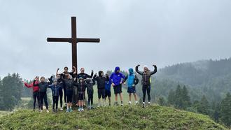 Gestartet wurde am Parkplatz beim Eschacher Weiher. Von dort aus ging es im Joggingtempo quer durch den nassen Wald bis hinauf zum Wenger Egg Turm. Trotz klatschnasser Kleidung und rutschiger Wege hielten alle tapfer durch, ganz getreu dem Motto: „Gemeinsam läuft’s sich leichter.“ Der Regen? Nur eine Nebensache. Die Motivation und der Teamgeist? Ungebrochen!