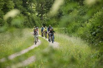 Der Radweg rund ums Sonneck ist 25 km lang, weist etwa 240 Höhenmeter auf und ist in einer reinen Fahrzeit von rund zwei Stunden zu schaffen. Tatsächlich dürfte diese Radtour aber viel länger dauern, es gibt soviel zu sehen und zu erleben. „Vom Rad aus sieht man einfach mehr, man riecht den Duft des frischen Heus, man hört die Vögel zwitschern und kann auch mal mit den Leuten am Wegesrand reden“. Vom Historischen Amtshaus in Weitnau führt die Fahrt gleichmäßig ansteigend auf der Trasse des ehemaligen Isny-Bähnles zum Speckbach-Wasserfall und weiter nach Hellengerst. Von da an muss man kräftig in die Pedale treten, der Anstieg hinauf nach Rechtis ist schweißtreibend. Dort, in fast 1.000 Metern Höhe ist der Scheitelpunkt der Runde erreicht, über Waldwege sausen wir hinunter ins Wengener Tal. Auf asphaltierten Wegen setzen wir die Fahrt fort, durch Kleinweiler-Hofen und Seltmans wieder zurück nach Weitnau. Die Runde ist mit etwas Kondition und einem Trekking- oder Mountainbike gut zu fahren. Die Ausblicke in Hellengerst und Rechtis sind herrlich.