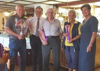 Ehrungen für Mitarbeiter: Franz Ferber 2.v.li. (Vorsitzender) ehrte bei der Jahresversammlung des VdK Weitnau langjährige Mitarbeiter: Matthias Mayer li. (Pressearbeit), Paul Baindl 3.v.li. (Beisitzer, 20 J.), Erika Ulmer 2.v.re. (Kassiererin, stellv. Vorsitzende 23 J.), Aloisia Ritter (Interims-Kreisvorsitzende)