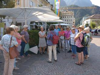 Am 24.08.2023 fuhren wir mit zwei Bussen der Firma Arnold über den Fern – und Reschenpass nach Meran zum Schloss Trauttmansdorff. In der 12 ha großen Gartenanlage, die zu den schönsten der Welt zählt, gibt es für alle Sinne was zu entdecken. Die Farbenpracht der Pflanzen, die Themenwege auch für verliebte und das Aussichtsplateau, einfach „Klasse“. Nach einem Kaffeestopp in der Stadt erreichten wir unser Sporthotel Spögler hoch oben auf dem Ritten. Am Freitag, den 25. starteten die 80 Enzianer zu einer imposanten Dolomiten - Rundfahrt. Nach Stopps in Kastelruth und in Sankt Ulrich im Grödnertal, hielten wir auch auf dem Sellajoch zum Fotografieren. Am Kalterer See endete diese Sehens und erlebnisreiche Fahrt bei tropischen 36 Grad. Der Samstag bescherte uns wieder sommerliche Temperaturen in Bozen, der Landeshauptstadt. Nach der Stadtführung konnte jeder mit einem Combiticket ausgestattet den restlichen Tag gestalten. Ob noch in den Laubengassen, auf dem Markt, gleich mit der Seilbahn nach Oberbozen und mit der Schmalspurbahn zu den Erdpyramiden oder in den Wellness Bereich vom Hotel, jeder nutzte individuell sein Programm. Nach dem Spezialitäten Menü brachten zwei Einheimische Musikanten die Bude sprichwörtlich zum „Kochen“, die Zugaben fanden kein Ende und unser Leo „Löffelte“ mit Begeisterung dazu. Ein heftiges Gewitter in der Nacht zum Sonntag bescherte uns wohltuende Abkühlung, doch auch einen nassen Tag. Nach einem kurzen Fotostopp im Gschnitztal, wo eigentlich eine Führung im Mühlendorf vorgesehen war, waren wir in der Landeshauptstadt Innsbruck besser aufgehoben. Mit Regenschirm bestückt schlenderten wir durch die Altstadt zum „goldenen Dacherl“ und genossen die vielfältige Gastronomie. Den gelungenen Abschluss der tollen Tage fanden wir im Schlossbrauhaus in Schwangau. Unseren Busfahrern Walter und Martin von der Firma Arnold gilt unser großer Dank für ihrer souveräne fahrweise.