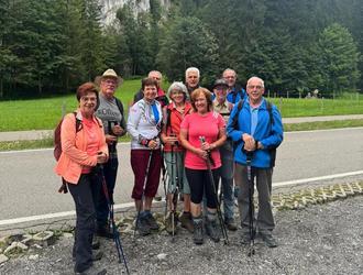 Am Dienstag, den 20.08.2024 um 8 Uhr, trafen sich bei bedecktem Himmel 10 Enzianer(innen) am Seltmanser Parkplatz und fuhren nach Obermaiselstein-Ried. Vom Parkplatz aus gingen wir auf der Straße zum Hirschsprung, der auf unserer Strecke lag. Auf einem Feldweg ging es zum Jägersberg hinauf. Hier genossen wir den herrlichen Ausblick, da sich die Sonne zeigte. Nach einer zünftigen Brotzeitpause wanderten wir auf einem Waldwurzelweg zur Judenkapelle, (1072m) hoch. Zwischendurch bekamen wir die schöne Aussicht auf Oberstdorf und die ganze Bergkette zu sehen. Das war unser höchster Punkt. Danach führte uns der Weg nach Tiefenbach hinunter und zum Parkplatz zurück. In Obermaiselstein, im Golf-Älple empfing uns die freundliche Wirtin. Dort genossen wir die gute Küche. Wohlbehalten, glücklich und zufrieden kamen wir wieder in Seltmans an.