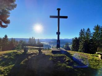 Von Sibratshofen rauf zum Gipfelkreuz (1035 m), rüber zur Riedholzer Kugel (1065 m) und wieder runter ins Tal: so sieht die „Kugel-Runde“ aus, immer an der Grenze zu Württemberg und dem Westallgäu. Eine mittelschwere Wanderung, die Kondition, Trittsicherheit und Orientierungsvermögen erfordert. Sie beginnt an der Dorfhalle in Sibratshofen und führt zuerst gemächlich und gut markiert über Wiesen hinauf in den Wald. Nach ein paar steilen Kurven endet der Weg auf einer Lichtung. Wir steigen höher und höher, der Weg wird schmaler und verwunschen. Nach etwa 3 km erreichen wir den Höhenweg zur Sibratshofer Kugel (Kreuz) mit einem wunderbaren Panorama. Ein Platz zum Verweilen und genießen. Über sehr idyllische Pfade geht’s über Stock und Stein zur nächsten Kugel, der Riedholzer. Ein Ausguck par excellence, hinüber ins Westallgäu und nach Vorarlberg. Das verwitterte Schild „Höchster Berg des Westallgäus“ stimmt leider nicht: die Kalzhofener Höhe hat 50 Meter mehr auf dem Buckel als die Kugel… Macht nichts: die Aussichtsplattform über der kräuterreichen Gipfelwiese ist ideal zur Brotzeit und zum Kraft sammeln für den Abstieg. Der leitet uns immer dem Wegweiser „Sibratshofen“ nach auf guten Wegen zurück ins Dorf. Tipp: Nehmen Sie Getränke und Proviant mit. Keine Einkehrmöglichkeit. Diese Wanderung ist ein lohnenswerter „Geheimtipp“!