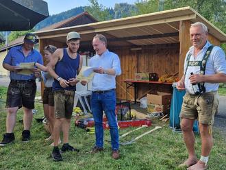 Siegerehrung beim Gaudi Rennen mit Florian Schmid und Rennleiter Norbert Horn