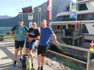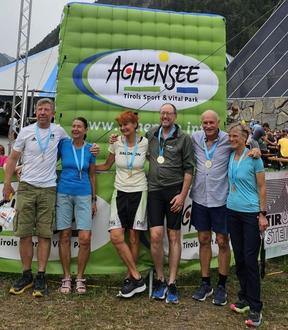 In weiser Vorausschau hatte die Abteilungsleiterin Jutta Kadel ihre Läufer/Innen als „mixed“ 2 er Staffeln gemeldet: dabei durften die Damen jeweils die flachen 14 km am Seeufer entlang laufen – während die Herren nach der Wechselstelle den restlichen felsigen Pfad durch die Seewände absolvierten. Start mit knapp 1000 weiteren Teilnehmern war in Pertisau. Die Übergabe an die Bergläufer erfolgte dann vor Achenkirch, wohin die Männer zuvor mit dem Schiff gefahren wurden. Als „Bloß id hudla -Linie 1/2/3“- Teams liefen Petra Bertling mit Josef Fink, Jutta Kadel mit Falko Hörner und Elke Matthiesen-Streicher mit Werner Baumann in den 2er Staffeln.