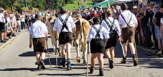 Weitnau / Wengen – Bei hochsommerlichen Viehscheid-Rekordtemperaturen von fast 30 Grad kamen am Samstag nicht nur die Treiber und Hirten ziemlich ins Schwitzen.