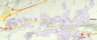 Aufgrund der Bauarbeiten auf der Kreisstraße OA 07 zwischen Bühl und Gerholz wird die Linie 50 ab der Haltestelle Abzweigung Hellengerst über die B12 nach Weitnau bis zur Schule fahren. Dort dreht der Bus und gelangt zurück auf die jeweilige Linienführung.
