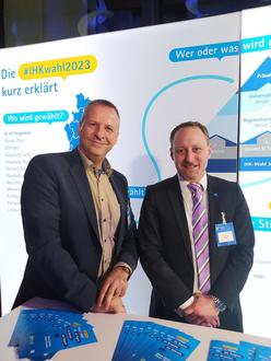 Bürgermeister Florian Schmid, Markt Weitnau (rechts), und Ulf Trabert, GABRIEL-CHEMIE Deutschland (links), Produktionsstandort Weitnau, im Kongresszentrum in Augsburg.