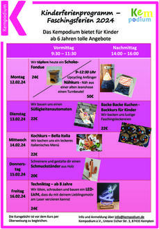 Das Kempodium bietet auch dieses Jahr spannende Angebote für unsere kleinen und großen Besucher (ab 6 Jahren) in den Faschingsferien.