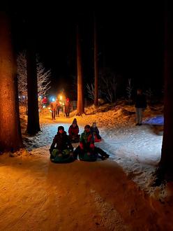 Am 18.01.2025 um 16.00 Uhr trafen wir (5 Kinder und 24 Erwachsene) uns am Parkplatz „Schlettermoos“ um zur Jugetalpe zu wandern. Auf gut begehbarem Winterweg erreichten wir kurz vor 17.00 Uhr die Alpe. Nicht alle begaben sich gleich in die beheizte Stube, die Kinder rutschen und tobten noch mit ihren Schlitten vor der Hütte, ein paar „Große“ fingen noch den tollen anbahnenden Sonnenuntergang mit ihren Handy`s ein. Gegen 19.00 Uhr machten wir uns wieder (gut gestärkt, mit prima Kässpatzen) auf den Weg. Mit strahlenden Kinderaugen und leuchtenden Fackeln, war das abermals ein beeindruckender Zug zurück zum Parkplatz.