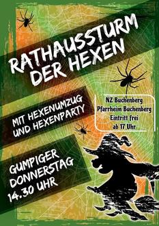Anschließend um 14.30 Uhr geht's auf zum Rathaussturm, um dann mit Spektakel und Getöse durchs Dorf zu ziehen und unseren Geschäften einen Besuch abzustatten (schon mal ein Dank im Voraus an alle teilnehmenden Geschäfte.) Die anschließende Hexenparty findet dieses Jahr ab 17.00 Uhr im Pfarrsaal statt, ausgerichtet von der Narrenzunft Buchenberg (auch euch ein herzlicher Dank!)