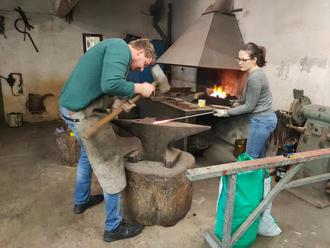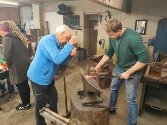Die begeisterten Besucher staunten nicht schlecht als ein 91-jähriger Gast auch noch den Schmiedehammer schwang.