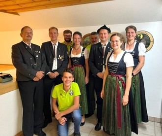 Vorstandschaft h.v.l. Gerald Kristen, Michael Rist, Lukas Mößlang, Katharina Reisacher, Josef Mößlang, Bernhard Hipp, Karin Rist v.v.l. Simon Karg, Julia Rist