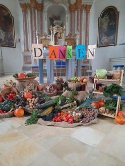 Auch dieses Jahr erklärten sich Franzi Rimmel und Miriam Gudermann wieder bereit und gestalteten einen wunderschönen Erntedankaltar.