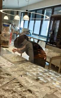 Der gesamte Schokoladenbereich war im vergangenen Jahr neu eröffnet worden und präsentierte sich den Besucherinnen und Besuchern als gläserne Manufaktur. Vom Rösten der Kakaobohnen bis hin zum fertigen Produkt fanden alle Produktionsschritte direkt im Hause statt. Der Rundgang erfolgte selbständig; die Arbeitsabläufe wurden anschaulich über Bildschirm und Tafeln erklärt. An verschiedenen Stationen sowie am Schokoladenkarussell gab es reichlich Gelegenheit zum Verkosten. Geschickte Chocolatiers formten aus Schokolade verführerische Spezialitäten, und wir konnten bei der Herstellung von Nikoläusen zusehen.