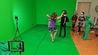 In der Greenscreen-Gruppe (Foto) unter der Leitung von Doris Sippel, herrschte Magie! Vor dem grünen Hintergrund verwandelten sich die kleinen Teilnehmer*innen in Meteorologen bei der Wettervorhersage, flogen scheinbar schwerelos durch die Wolken und produzierten Märchenfilme mit prächtigen Schlössern im Hintergrund. Die gefilmten und mit der Greenscreen-App bearbeiteten Ergebnisse schauten sich die Kinder mit großer Begeisterung direkt im Anschluss auf dem großen Bildschirm an. So machten die kleinen Schauspieler erste Erfahrungen mit den Tricks der Filmwelt und erfuhren gleichzeitig, wie leicht es sein kann falsche Wirklichkeiten zu erzeugen.