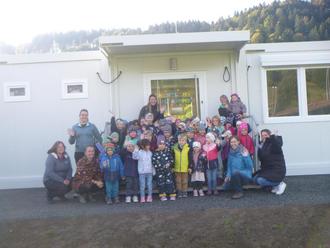 Weil die Kindertagesstätte St. Martin in Missen aus allen Nähten platzt, wurde als Übergangslösung in der Nähe von der KiTa ein "Containermodul" aufgestellt. Ein paar "alte" Kindergartenkinder zogen in die "Sonnengruppe" um und wurden von den anderen Kindern und Erzieherinnen dorthin begleitet.