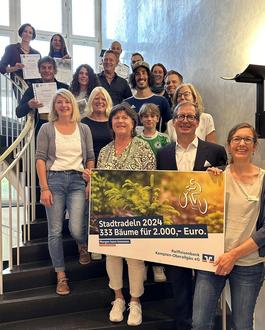 Eine ganz besondere Motivation für alle Teilnehmerinnen und Teilnehmer stellten auch in diesem Jahr wieder die Baumspenden der Raiffeisenbank Kempten-Oberallgäu eG für das Bergwaldprojekt dar: die Maßgabe war ein Baum-Setzling pro 2.000 Kilometern, die von allen Radelnden zusammen für den Landkreis erreicht werden. Die 154 erradelten Bäumchen für ein Pflanzprojekt im Kempter Wald hat die Raiffeisenbank großzügig verdoppelt und in diesem Jahr die schöne Anzahl von 333 Baumsetzlingen für das Bergwaldprojekt im Oberallgäu gespendet. Aus den Händen des Raiba-Vorstandssprechers Heinrich Beerenwinkel erhielten die Teams Zertifikate über die von ihnen „erstrampelten“ Bäume.