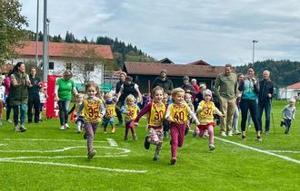 Anschließend lud der TSV Missen-Wilhams zum gemütlichen Ausklang an den Sportplatz ein. Dort starteten dann 14 Kindergartenkinder zu ihrem Lauf einmal um den Sportplatz und 18 Grundschüler absolvierten zwei Sportplatzrunden. Mit viel Zuschauerapplaus begleitet im Ziel angekommen, gab es eine Medaille und ein gemischtes Süßigkeiten Päckchen für die Nachwuchs-Läufer.