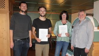 Die beiden Vorsitzenden Alexander Warnke und Rainer Hitzler überreichten die Ehrung für 50 Jahre Mitgliedschaft an Anni Mayr, Hermann Strauss und Eduard Knak;