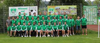 Mission Klassenerhalt erfüllt - Abschiedsfoto mit dem scheidenden Trainer Eggensperger (2. v. l. neben Abteilungsleiter Parotat) beim letzten Heimspield er vergangenen Saison. Auch unter Nachfolger Jäger läuft es sportlich, das Team steht derzeit auf dem 2. Platz in der Kreisliga Süd