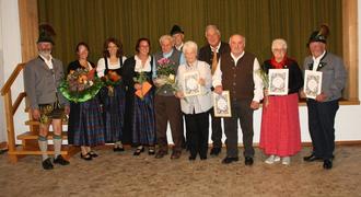 Im Rahmen der Versammlung dankten die Vorälpler Ludwig Mader für 70 Jahre Mitgliedschaft und Clementine Margraf für 60 Jahre. Sie war lange Jahre aktiv und als Inventarverwalterin tätig. Neue Ehrenmitglieder sind Anton Breher, Willi Göser, Anton Keller, Rosemarie und Albert Dornach. Ingrid Sonnenwald wurde für 40 Jahre aktive Mitgliedschaft ausgezeichnet; 40 Jahre passiv sind Franz-Josef Rasch, Michael Burger, Anton Sattler, Gertrud Sattler, Georg Maier, Erhard Ott, Fritz Brixi, Franz Schindler, Georg Hengeler Hermine und Josef Geist dabei. 25 Jahre ist Annemarie Zimmermann dem Verein treu. Für 25 Jahre aktive Mitgliedschaft wurden Christine Maidel und Irene Fleschutz geehrt. Besonderer Beifall galt Irene Fleschutz, die als „kreativer Geist und Motor“ immer aktiv ist – von der Jugendarbeit bis zur Inventarverwalterin.