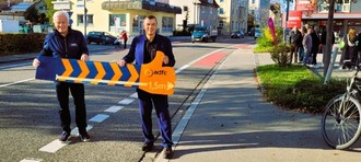 Die Professoren Thomas Zahn und Tim Poguntke von der Fakultät Elektrotechnik der HS Kempten hatten im Frühjahr ein Projekt initiiert, bei dem ihre Studenten mit Unterstützung des ADFC mehrere Tausend Überholvorgänge zwischen Pkws und Radlern mittels eines bewährten und an Testrädern montierten Sensors maßen. Die Testfahrer des Fahrradclubs waren in Buchloe, Memmingen und auf vier vielbefahrenen Straßen in Kempten unterwegs:“ Wir haben Brennpunkte und neuralgische Stellen gefunden, an denen im Schnitt 65 Prozent der Überholvorgänge zu nah erfolgten, also im Abstand von weniger als einem Meter,“ erläuterte Professor Zahn die Ergebnisse der Messungen, “das ist besorgniserregend!“ Denn gesetzlich vorgeschrieben ist innerorts ein Abstand von 1,50 Meter, außerorts sind es sogar 2 Meter. Verstöße können mit 30 Euro Bußgeld sanktioniert werden, so der Leiter der Verkehrspolizeiinspektion Kempten, Polizeioberrat Robert Bischlager: “Auch wenn es beim Überholen von Radfahrern keine auffälligen Unfallzahlen gibt, macht die Studie nachdenklich,“ sagte Bischlager, “gerade in Kurven oder auf engen Straßen entstehen schnell gefährliche Verkehrssituationen.“ Künftige Polizeistreifen mit sensor-bestückten Fahrrädern und die Ermahnung von Nah-Überholern sind eine Überlegung wert, so der Polizeioberrat.