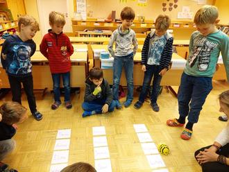 Ein paar besondere "Bienchen" waren an der Grundschule Missen-Wilhams zu Besuch. Ein ganzer Schwarm sogenannter Beebots stand den Schulkindern zur Verfügung. Hinter den lustigen Bienen verstecken sich kleine Roboter, mit denen die Kinder spielerische Erfahrungen im Programmieren sammeln können. Das macht nicht nur Spaß, sondern auch schlau. Ziel war es, die Biene mittels Tastenkombination dorthin fahren zu lassen, wo man sie haben will. Während der Fahrt kann die Programmierung nicht mehr abgeändert werden. In Windeseile klappten einfache Fahrten recht gut, so dass man sich auch an schwierigere Aufgabe heranwagen konnte. Zwischen ihren Einsätzen mussten die Bienen immer wieder neue Kraft für ihren Einsatz tanken. Die Kinder waren sich einig: Beebots machen enorm viel Spaß. Die Leihgabe der Medienzentrale Oberallgäu darf noch ein bisschen in Missen bleiben, bevor die Bienen wieder an andere Schulen weiterreisen.