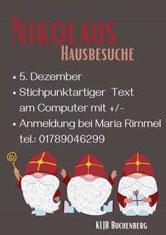 Auch dieses Jahr gehen die Klosen und der Nikolaus der Landjugend Buchenberg von Haus zu Haus. Haben auch sie Interesse an einem Hausbesuch!