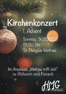 Am 30. November 2025 laden wir Euch zu einem besinnlichen Kirchenkonzert herzlich ein. Unsere Dirigentin Lucia Klöpf hat ein abwechslungsreiches Programm zusammengestellt, das ruhige Klänge und moderne Musik bietet.