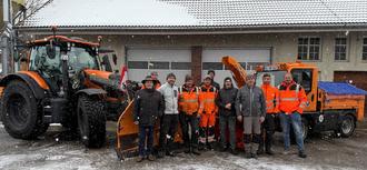 Im Bild zu sehen ist die Übergabe der neuen Bauhofgerätschaften von den Firmen Gerätetechnik Schmid und Kalinke GmbH an das Bauhofteam und Bürgermeister Toni Barth.
