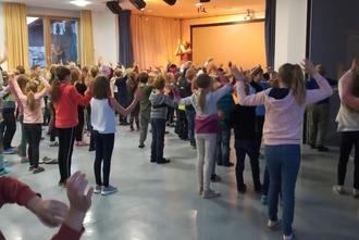 Fit in den Winter starteten die Grundschüler der Schule Buchenberg. Ein ganz besonderes sportliches Angebot erwartete die Kinder jeden Dienstag zu Schulbeginn. Unter dem Titel: „wake and shake“ trafen sich die 6- bis 10- Jährigen um 8 Uhr in der Aula. Dort wurden auch die letzten Langschläfer mit Bewegung zu fetziger Musik aufgeweckt. Mit viel Spaß und Energie tanzten alle mit. Die Backen glühten und die Augen strahlten, wenn gegen 8:15 Uhr alle Kinder munter wieder in ihre Klassenzimmer spazierten, um hellwach dem Unterricht zu folgen. Nun wird das Angebot von klassenübergreifenden adventlichen Feiern abgelöst. Auch hier erwartet die Kinder wieder allerhand zum Mitmachen, aber auch zum Angucken und Zuhören.