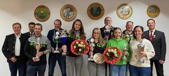 Die Siegerehrung startete mit dem Ehrenpreis der Gemeinde Buchenberg. Bürgermeister Toni Barth und Andreas Maidel überreichten gemeinsam die Pokale an die Gewinner. Den Ehrenpreis der Gemeinde sicherte sich dieses Jahr mit 182 Ringen die Jugendschützin Larissa Sterk vom Schützenverein Schwarzerd. Den Tiefschusspokal, besser bekannt als Blattlpokal, gewann Horst Kittel mit einem 2,8 Teiler vom Schützenverein Wirlings. Der beste Schütze beim diesjährigen Pokalschießen war wieder einmal eine Frau! Die Jungschützin Franziska Krezler sicherte sich den Sieg ganz knapp vor ihrer Vereinskollegin Elisabeth Wiedemann mit 187 Ringen. Nur durch das bessere Schussbild konnte sie den Sieg für sich verbuchen. Anschließend folgte die Siegerehrung der Mannschaftswertung. Bei den Schülern, der Jugend, den Damen, den Pistolenschützen und der allgemeinen Schützenklasse sicherte sich jeweils der Schützenverein Schwarzerd den Sieg. Herzlichen Glückwunsch für dieses herausragende Vereinsergebnis! Nur bei den Auflageschützen konnte der Schützenverein Wirlings den Pokal mit nach Hause nehmen.