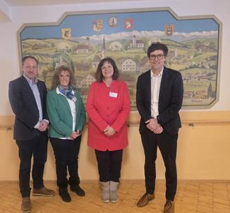 v.l.: Bürgermeister Florian Schmid, stellv. Einrichtungsleitung Ulrike Frey, Einrichtungsleitung Luzia Schmid und Geschäftsführer der Allgäupflege Florian Adolf