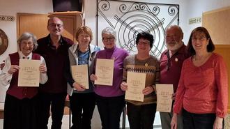 Von links: Ulla Raffler (25 Jahre) 1. Schützenmeister Karl-Heinz Bickel; Maria Aierstock, Marion Bickel, Sieglinde Rasch, Klaus Kledwig – alle 50 Jahre, 2. Schützenmeisterin Ruth Klatt
